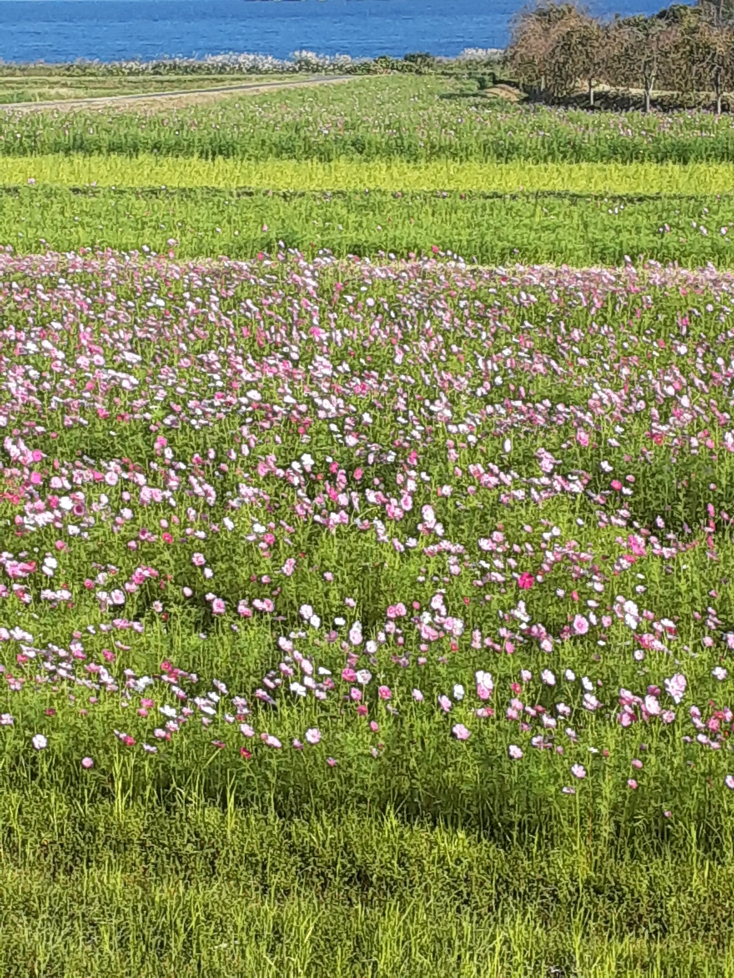 しかも、稲の収穫後の畦や空いた田んぼって、日当たりも良くて水はけもいいから、コスモスにはぴったりの環境なんだよね。