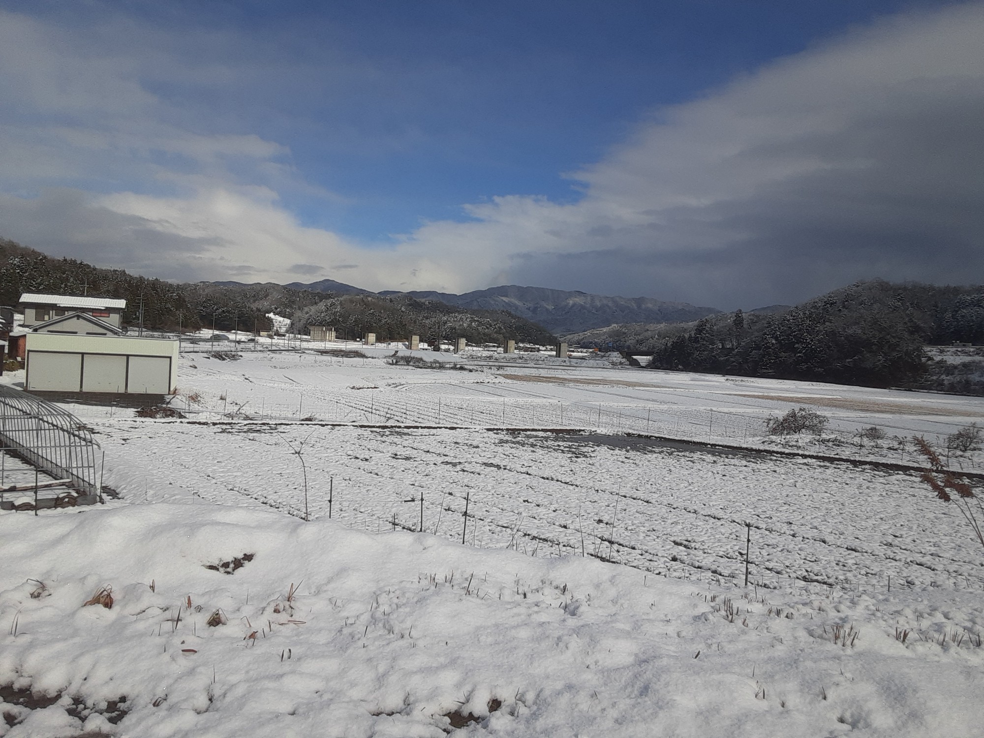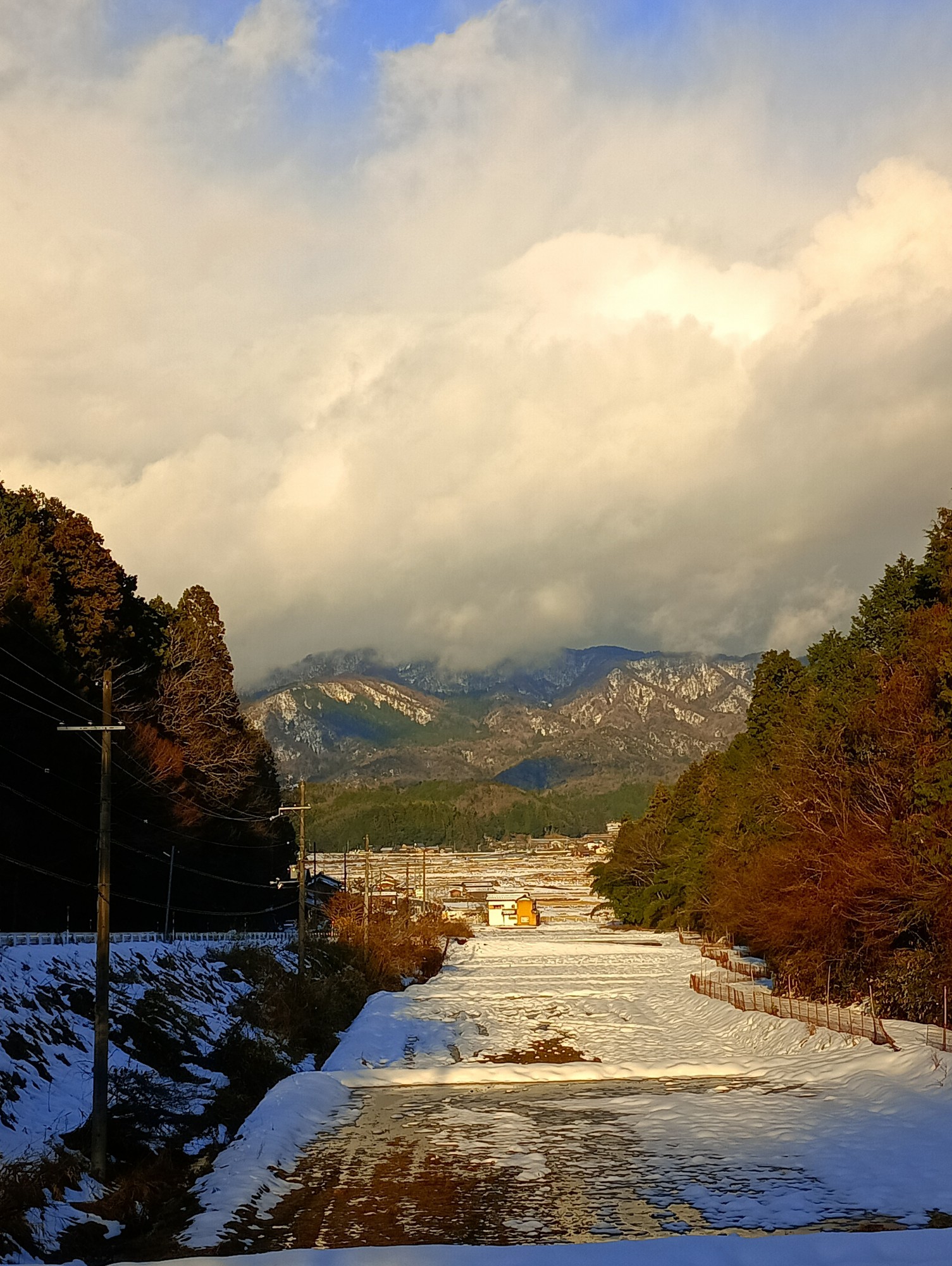 大宮町五十河から西、森本方向、冬水田んぼに映る夕日を見ていたのです!